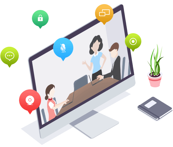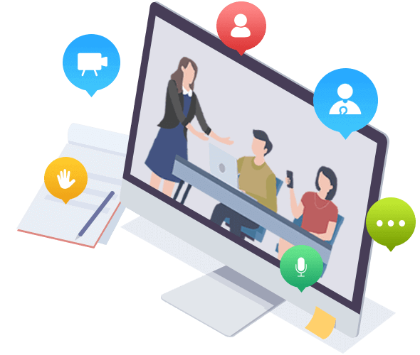 多种会议角色,主持人、助理、演示者、参会者公聊、私聊文字互动,语音视频互动