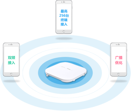 ①:轻松应对高密并发场景新一代无线AP设备,采用双频接入模式,并支持优先接入5G频段;