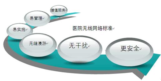 上述几点是比较典型的医院在无线应用方面的顾虑,同时对无线网络的建设也提出了一些关键性要求。那么医院对无线网络选择还需要关注什么呢?新一代无线网络应该具备什么样的特征呢?是不是最贵的设备组合起来就是最好无线网络呢?下面,H3C医院无线解决方案将从安全、干扰、漫游、供电、管理、增值等多方面来帮助医院规划无线网络。