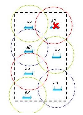 * 当覆盖区域内的某个AP发生故障而造成覆盖黑洞时,无线控制器会自动调整相邻的AP的发射功率以消除黑洞区域,当故障AP恢复工作后无线控制器可以自动调整邻居AP的发射功率恢复原始工作状态