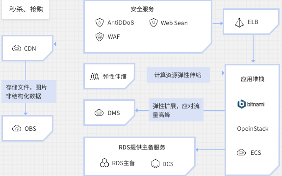 对应产品: 弹性云服务器 | 弹性伸缩服务 | 弹性负载均衡 | 云硬盘 | 关系型数据库
