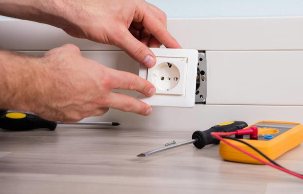 在房间内任意位置根据需要将弹起式地插座固定在地面上,铺装地板过程中遇到插座时即切割地板。