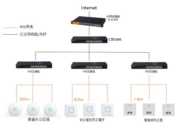 对于大型企业来说,在选择无线覆盖解决方案时应该寻找靠谱的供应商合作,不仅要使用靠谱的硬件设备,安装技术指导,售后服务等也是不可忽略的环节,大型企业的无线覆盖一般要求适用于现在及未来的需求,所以高要求高标准不是随便买几台网关AP就可以解决的。