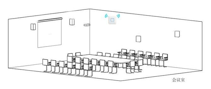 企业可酌情安排会议室AP布置。一般人员较为密集型的会议室推荐使用双频吸顶AP,会议型环境对无线网络要求更高,所以使用新一代802.11ac标准的双频AP更能保障网络的稳定性和高密度的终端接入。