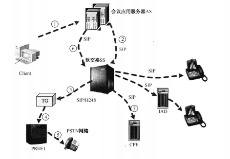 以上几种逻辑实体共存于一个视频会议系统中,也可以分布于不同的系统当中。SIP服务器完全由软件实现,可以根据需要云星宇各种工作站或专用设备中。