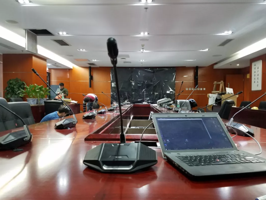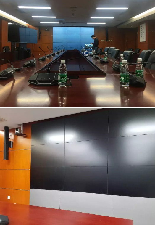 贵宾接待室主要接待访客,所以并没有配备视频会议终端,主要配置了吸顶扬声器、无线主机、无线话筒、音响系统等等。