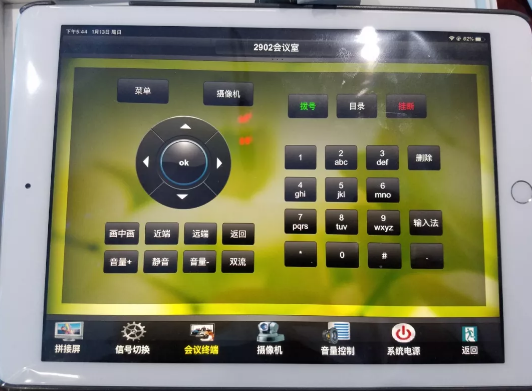 高管会议室主要采用的是鸿合ICB-X9交互一体机、宝利通550视频会议终端以及索尼的激光投影仪,并且从美信定制了液晶升降屏幕。主要实现了在大屏的基础上无压缩并排显示多个画面,以及交互功能,方便高管交流。其他还有音、视频矩阵系统的建设,电话终端等等,并预留了充足的接口。最后还集中配置了管理系统,可以支持预设场景,一键调用等等功能。