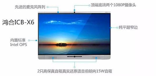 主要采用宝利通550终端及模拟电话终端、鸿合ICB-X8交互一体机,另外配备三星双显屏幕。